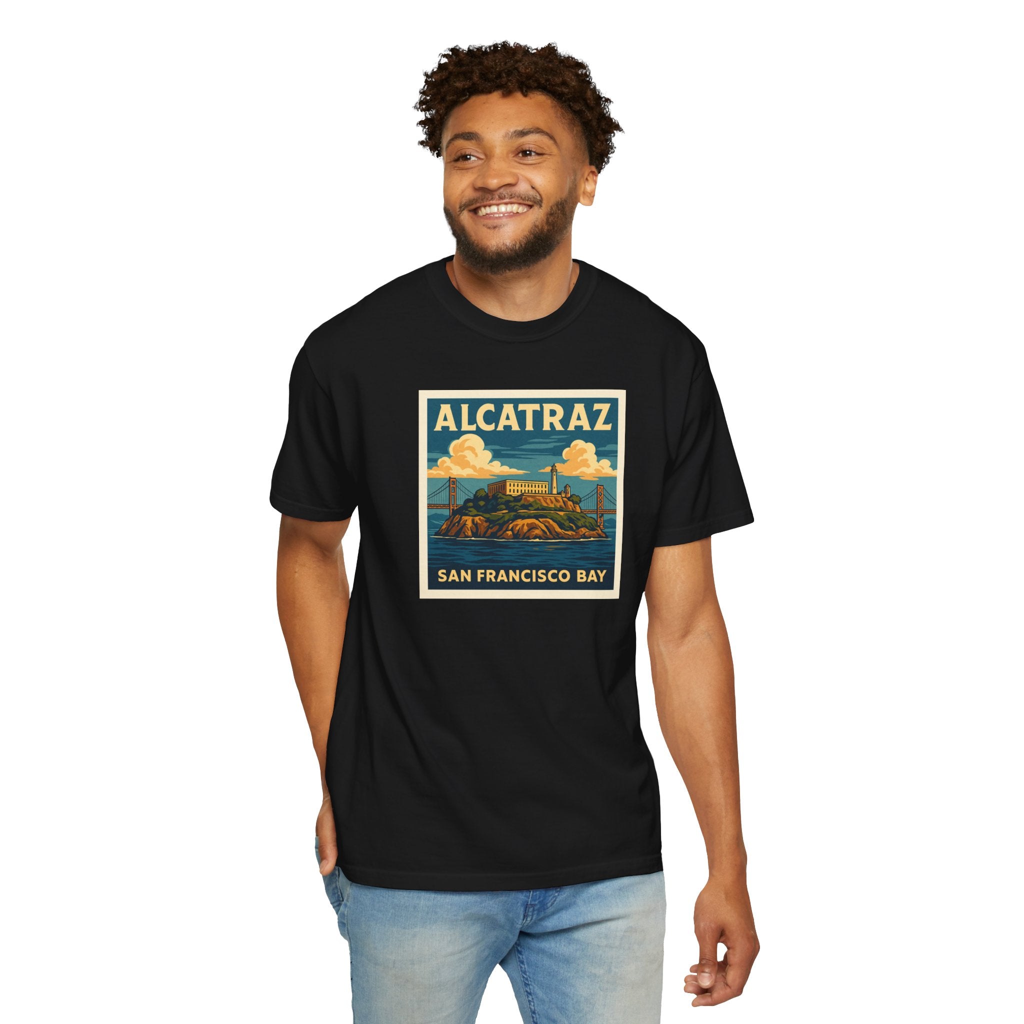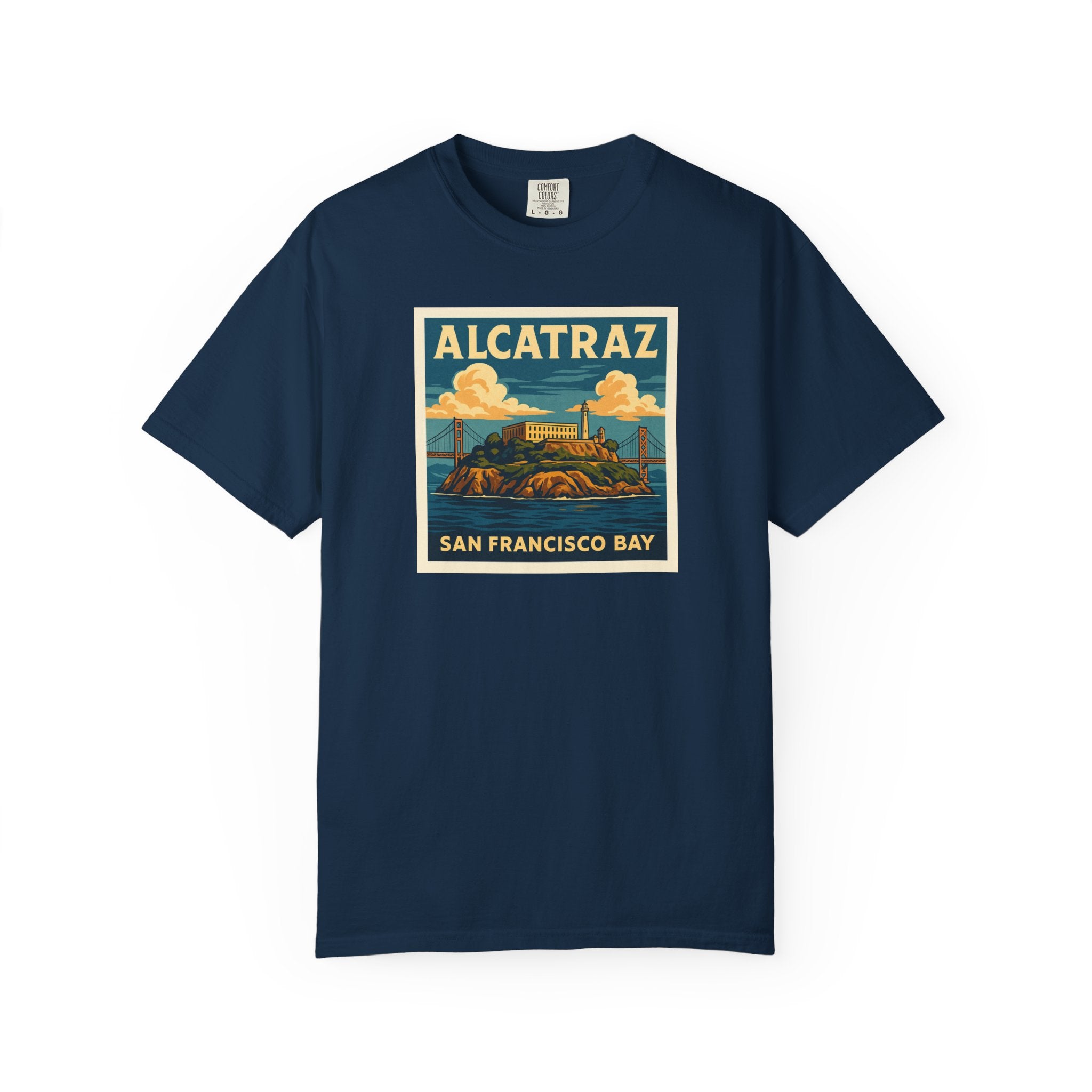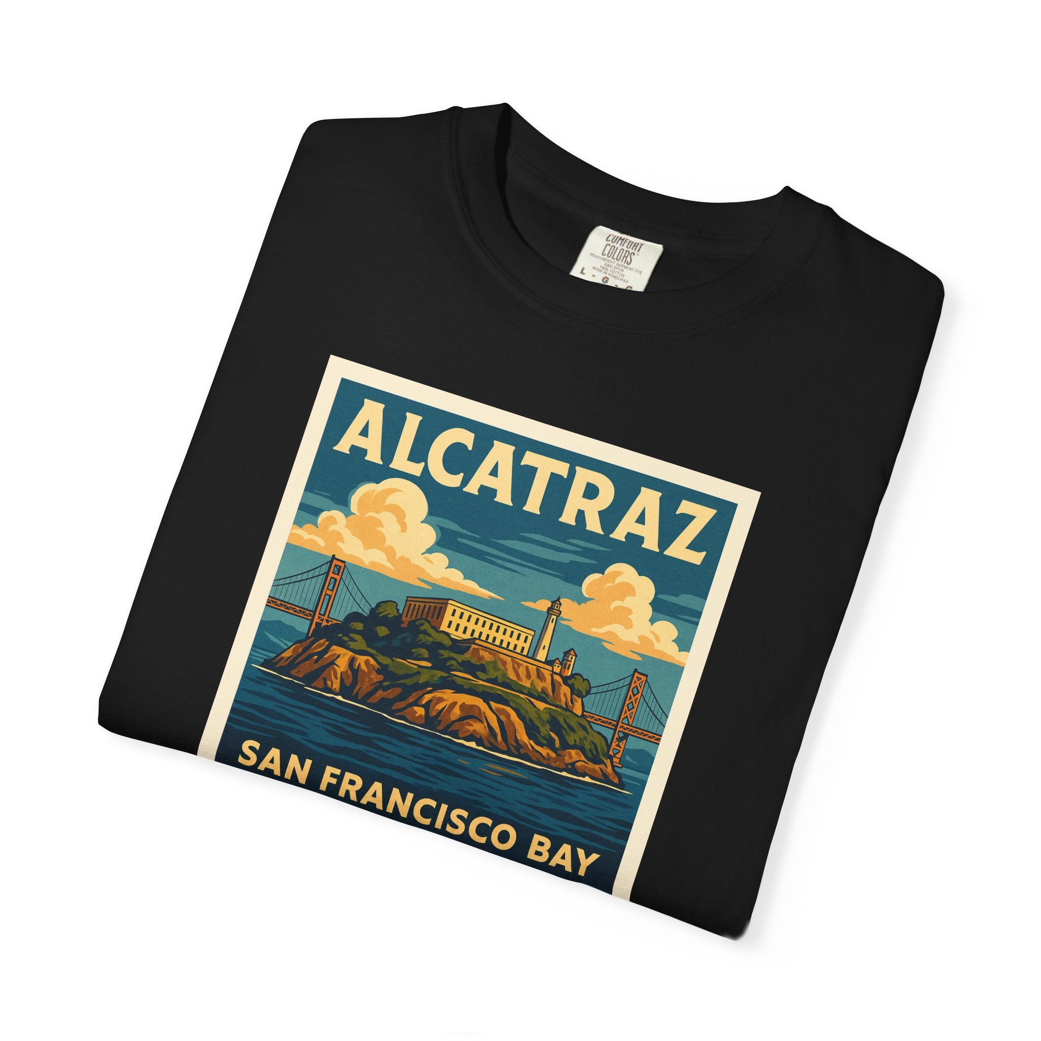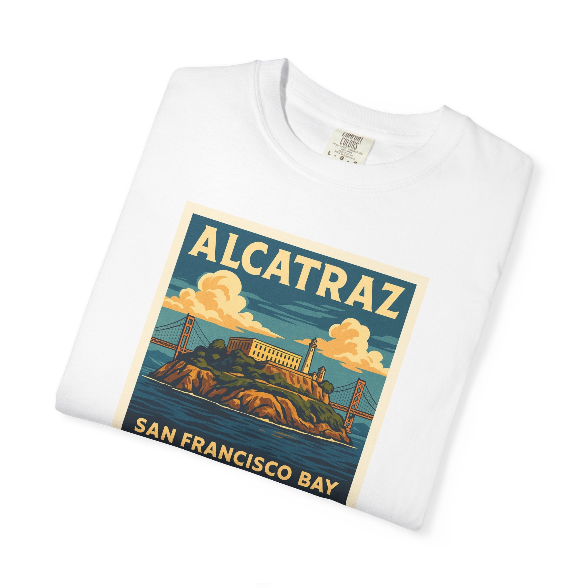 The Rock. Alcatraz. Introducing our versatile Unisex Garment-Dyed T-shirt, perfect for anyone seeking a blend of comfort and style. This relaxed-fit tee is created with a unique garment-dye process, resulting in a soft texture and rich color that add character to your wardrobe. Ideal for casual outings or laid-back semi-formal occasions, it allows for easy layering and accessorizing, making it a staple for every season. With sizes ranging from S to 4XL, there's a fit for everyone—comfortable enough for daily wear while stylish enough for evenings out. It's a great gift for friends and family, and perfect for holidays like birthdays or celebrations like summer gatherings. Crafted ethically from 100% US cotton, this tee supports sustainable practices, making it a thoughtful choice for the environmentally conscious shopper. Embrace effortless style with our Unisex Garment-Dyed T-shirt!